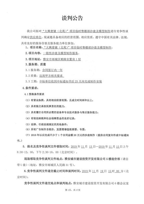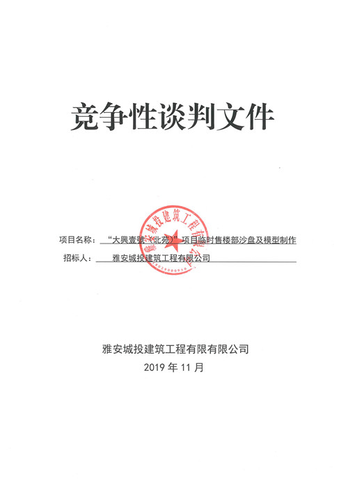 大興壹號(北苑)項目臨時售樓部沙盤及模型制作競爭性談判公告