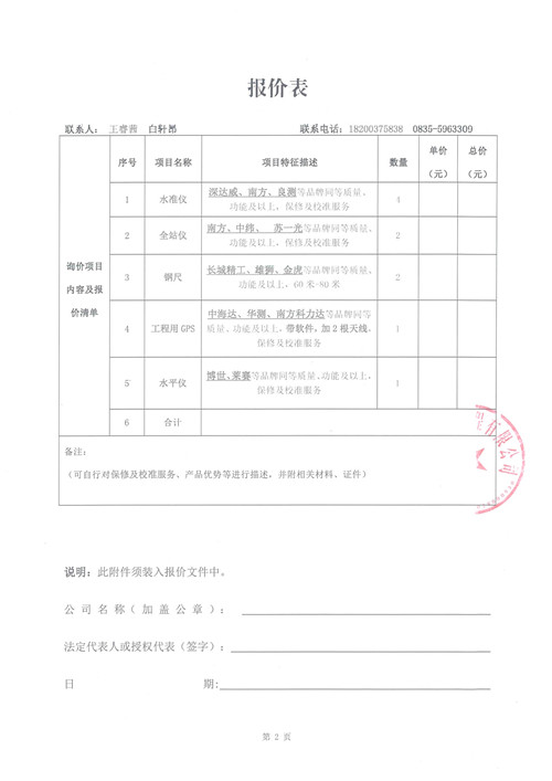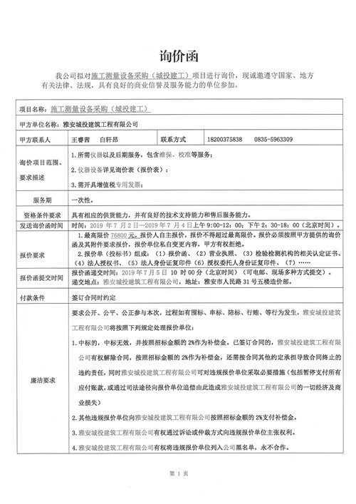 詢價(jià)函 施工測(cè)量設(shè)備采購(gòu)(城投建工)