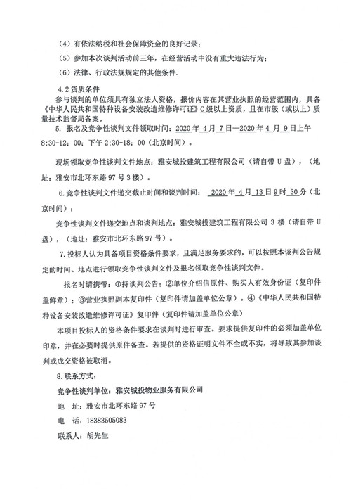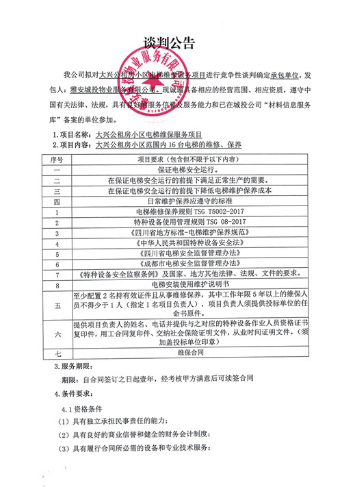 城投物業(yè)公司大興公租房小區(qū)電梯維保服務(wù)項目競爭性談判公告