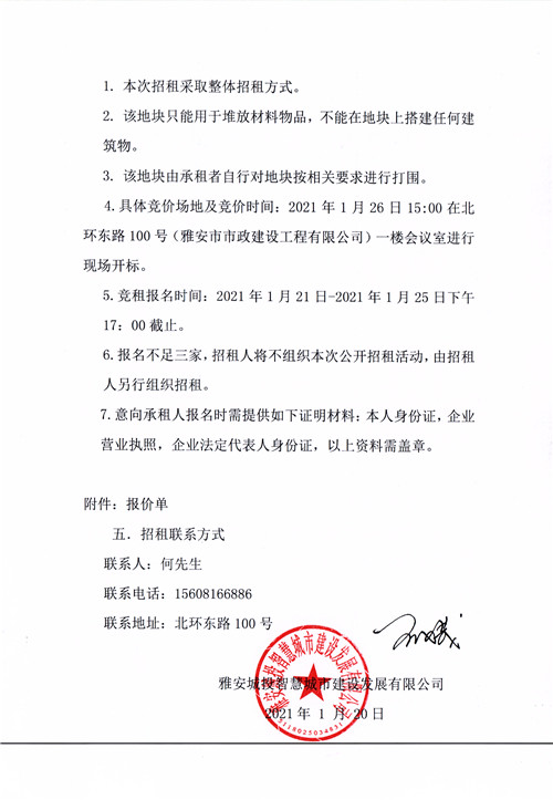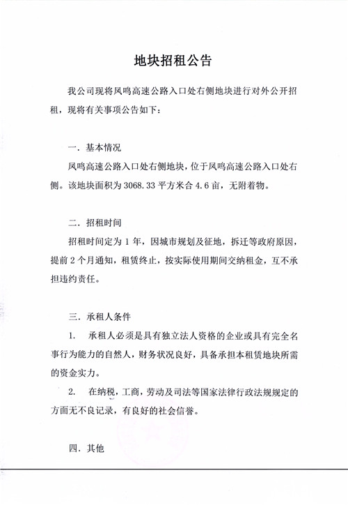 雅安市市政建設工程有限公司鳳鳴高速公路入口處右側(cè)地塊招租公告