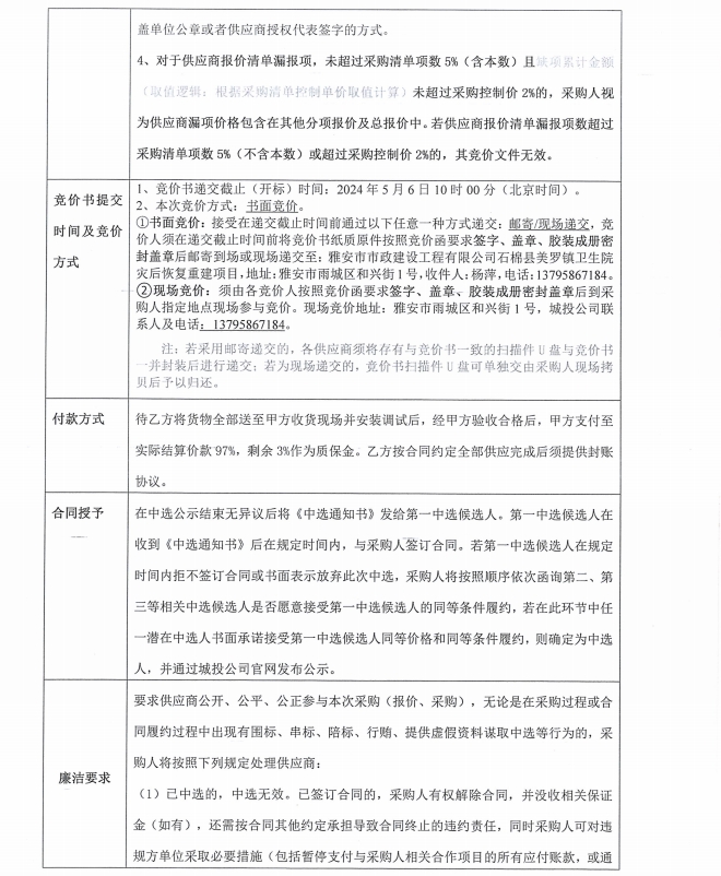 石棉縣美羅鎮(zhèn)衛(wèi)生院災(zāi)后恢復(fù)重建項(xiàng)目消防水箱采購(gòu)(第二次)競(jìng)價(jià)公告