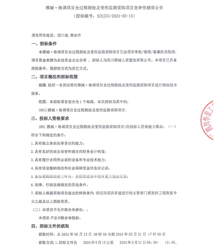 雅城·格調(diào)項目全過程測繪及變形監(jiān)測采購項目競爭性磋商公告