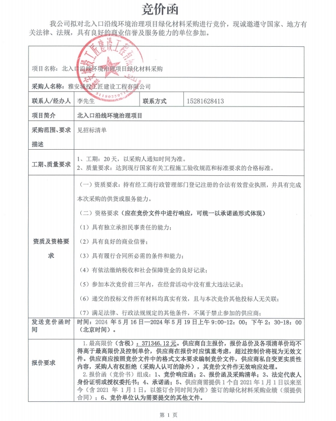 北入口沿線環(huán)境治理項(xiàng)目綠化材料采購競(jìng)價(jià)公告
