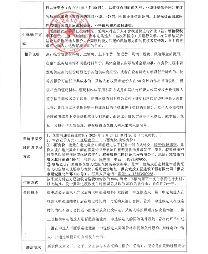 雅安市大興生態(tài)旅游建設(shè)項目洗凈細白沙材料采購競價公告