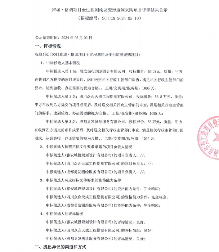 雅城·格調項目全過程測繪及變形監(jiān)測采購項目評標結果公示