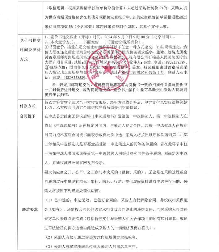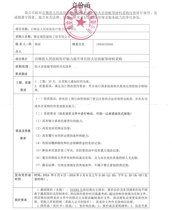 石棉縣人民醫(yī)院醫(yī)療能力提升項(xiàng)目防火巖面板等材料采購內(nèi)容競價公告